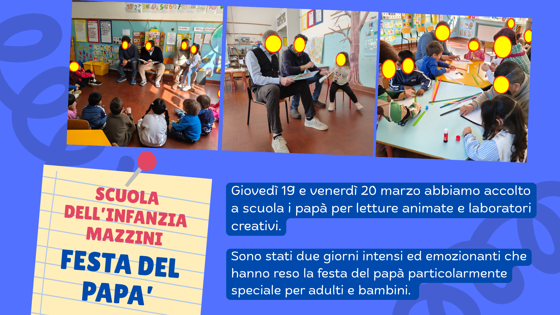 Sono stati due giorni intensi ed emozionanti in cui adulti e bambini hanno condiviso il tempo scuola costruendo ricordi significativi e preziosi. Auguri a tutti i Papà!